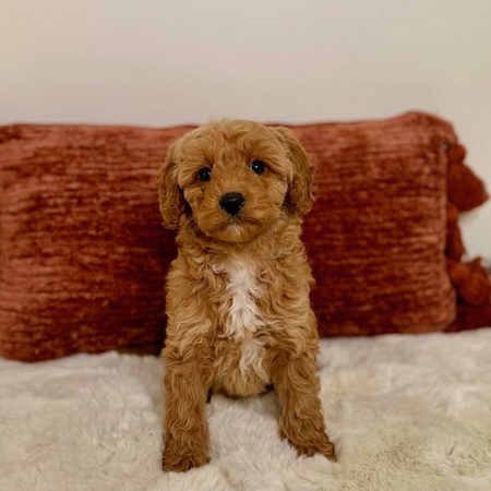 Check out this super cute micro mini Goldendoodle Puppy Clarice! Clarice is a light apricot with white female Micro Mini Golden Doodle Puppy. She is hypo-allergenic, wavy coat, light apricot with NO-shedding and a gorgeous wavy coat! Clarice is well started on his house breaking and so playfull and sweet! If you have any questions about this pup, want videos or to FT please call or text us today TEXT US NOW or contact us here.