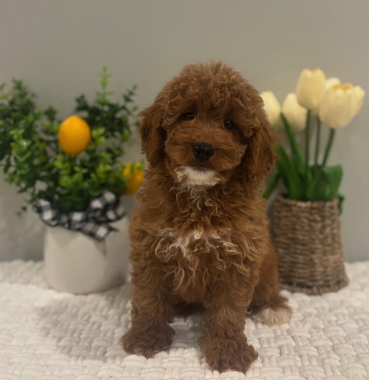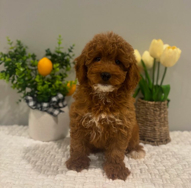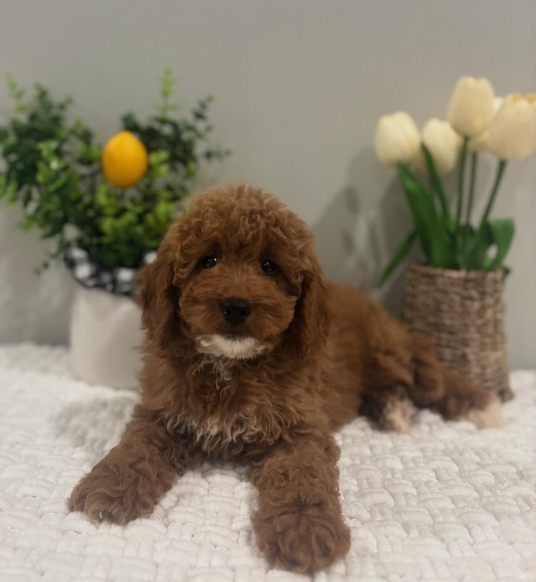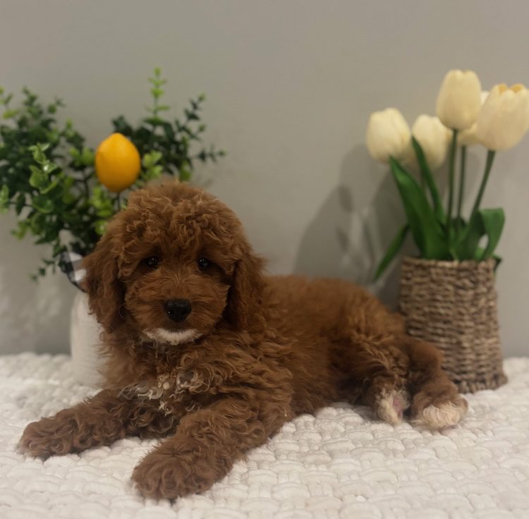 $500.00 Deposit or Pay in full with your Credit Card to reserve this show quality F1B Micro Mini golden doodle girl! “Lunaa” has a great head and tiny and properly proportioned body. She will be anywhere from 10-16 lbs. Luna is considered an F1B Micro Mini goldendoodle puppy. This amazing micro mini doodle puppy and will be ready to go home next week! She is priced at $3500 and comes with her health cert and first round of shots. Delivery is available. Your credit card will be billed from Designer Golden Doodles! If you have any questions about this pup please call or text or email us! 609-827-2645 or contact us here. We also offer financing on all of our puppies! To see if you quality click here.