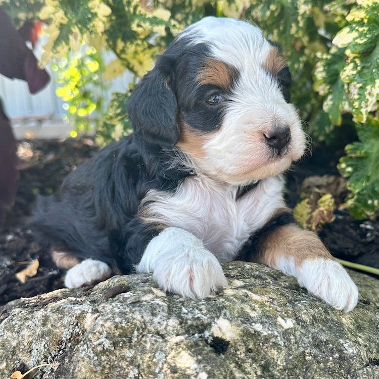 Meet “Lacy” She is a mini Bernedoodle puppy and is just as gorgeous as she is sweet! DOB 8.3.25  She is a multi-gen mini meaning her parents are BOTH pure mini Bernedoodle.  She will weigh between 28-32 pounds on average.   Mother weighs 27 and dad weighs 29 lbs.
