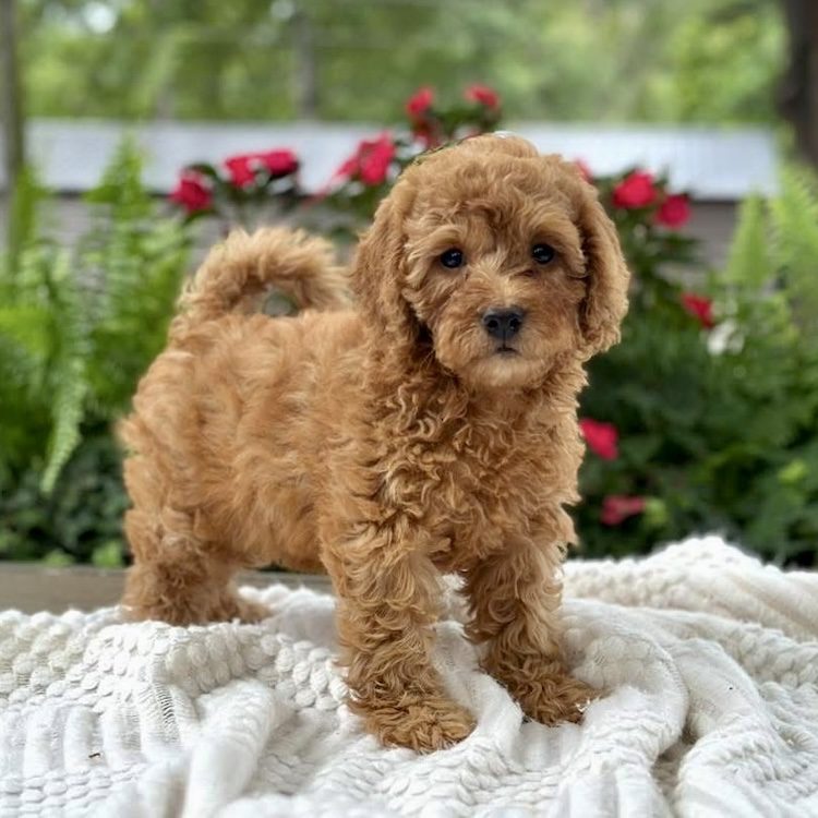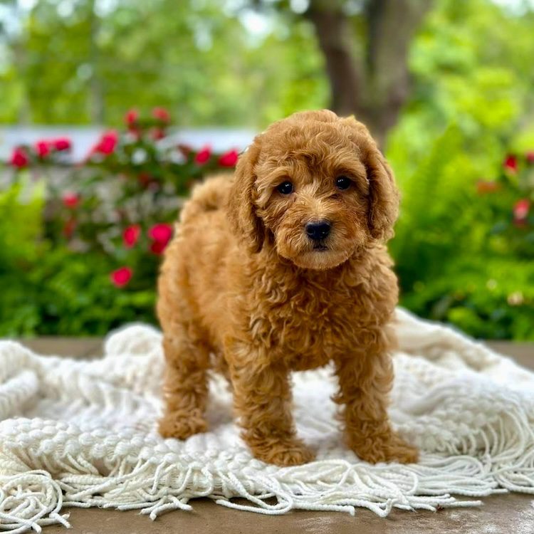 $500.00 Deposit or Pay in full with your Credit Card to reserve this beautiful mini golden doodle girl! “Willow” has a great head and build. She is tiny but full of spunk! She is a petite mini goldendoodle and therefore will be anywhere from 15-20 pounds. . This amazing petite mini doodle puppy and will be ready to go home this week! She is priced at $3500 and comes with her health cert and first round of shots. Delivery is available if you are unable to pick him up. We also offer financing through our partner Terrace Finance, to explore financing options, please click here. If you have any questions about this pup please call or text or email us! 609-827-2645 or contact us here.